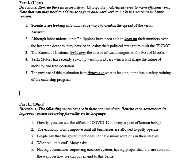 Solved Part I 10pts Directions Rewrite The Sentences Chegg Com